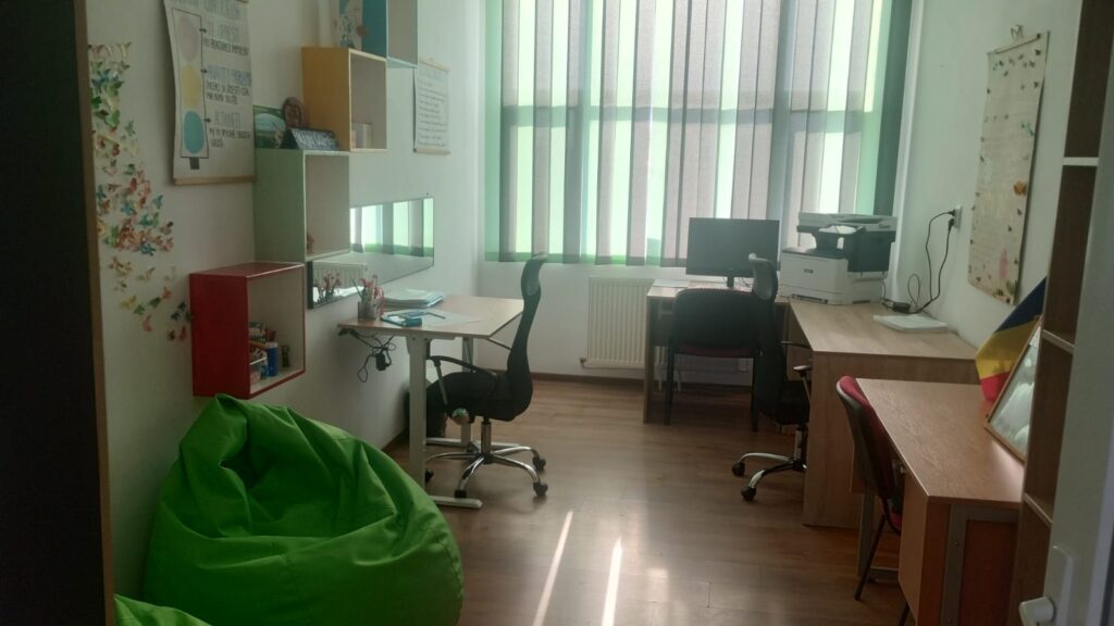Cabinetul dispune și de kit ABA și de instrumente profesionale pentru evaluarea dislexiei și disortografiei, facilitând identificarea timpurie și intervenția adecvată. Atmosfera este întregită de scaune moi, care creează un cadru sigur și relaxat pentru consiliere și suport emoțional.