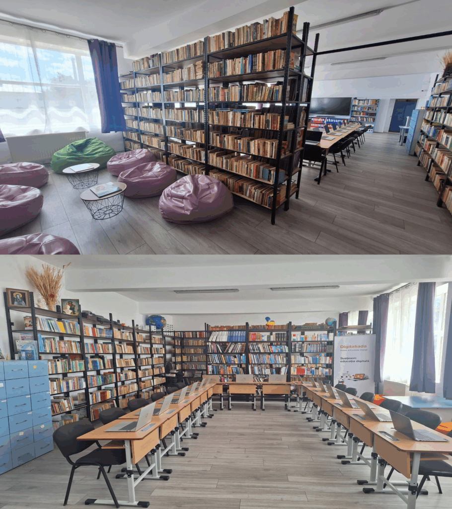 Anul 2024 a adus și o renovare completă a întregului spațiu, însoțită de dotări tehnologice moderne: laptopuri, tablă interactivă, sistem de sonorizare, scanner, imprimantă multifuncțională, imprimantă 3D și alte resurse digitale. Un spațiu de lectură confortabil completează atmosfera, oferind un loc dedicat studiului individual și activităților culturale.